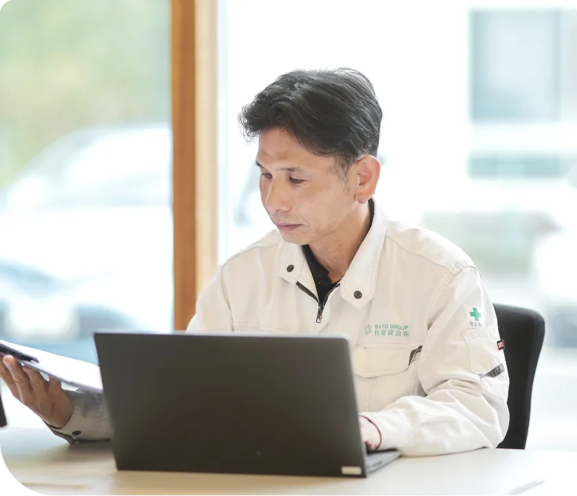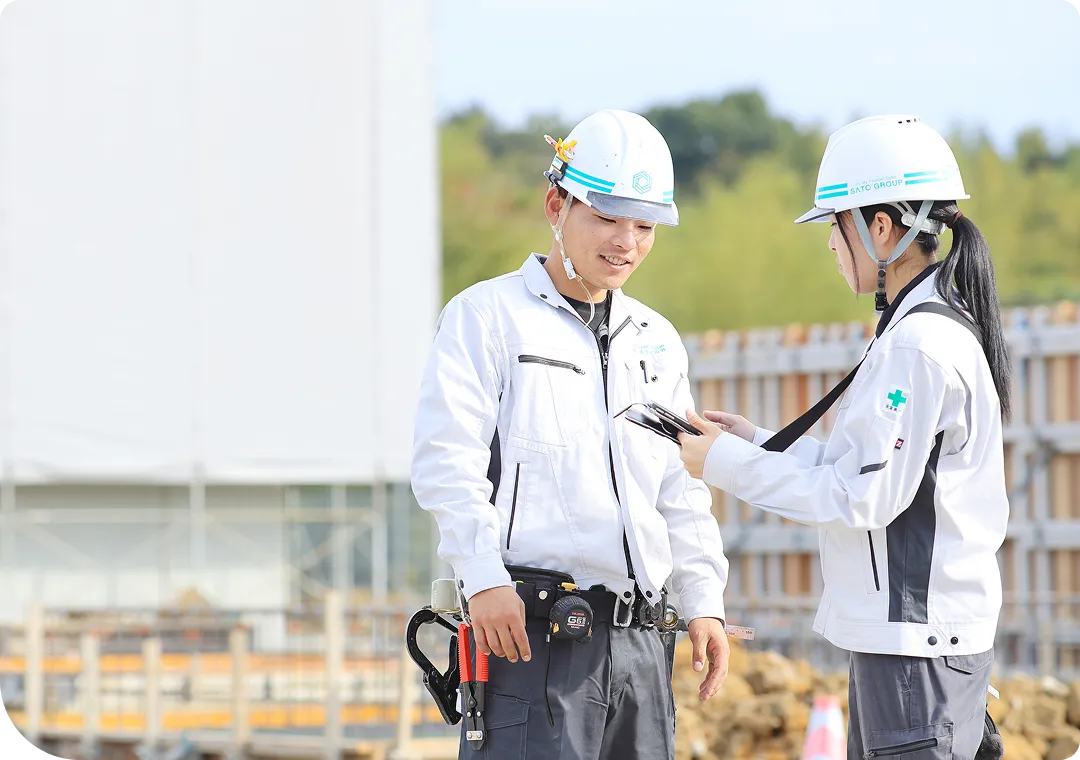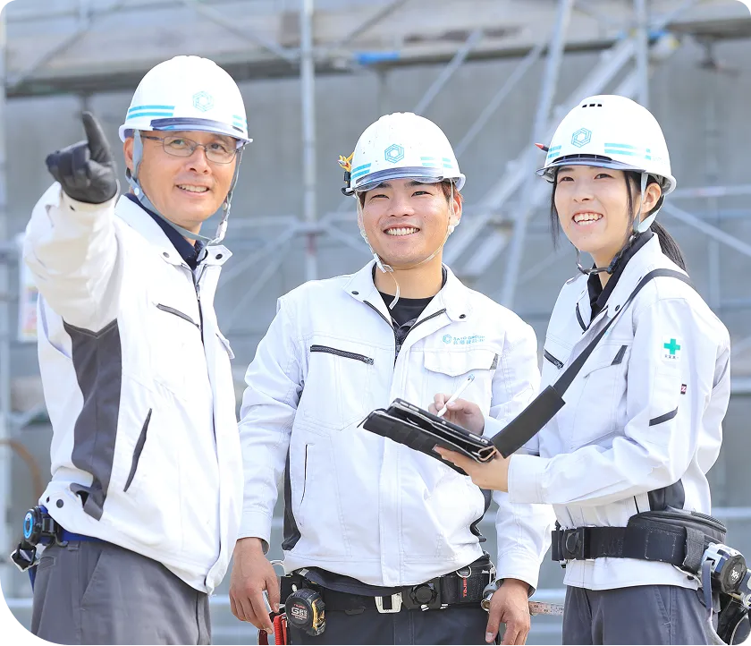 注文住宅の施工管理を担当します。施主様との距離が近く、要望や変更にも柔軟且つ誠実に対応する必要があります。住宅は一人ひとりのお客様にとって一生に一度の大切な買い物。特に注文住宅は、間取りや素材、内装・外装などが1邸ごとに異なるため、細部にわたって打ち合わせを重ねて進めます。現場では、限られた予算とスケジュールの中で、資材の発注や職人の手配、工程・品質・安全管理を行う力が求められます。